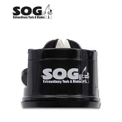 SOG Sharpener Manufacture ID: SH01Now SOG takes the hassle out of knife sharpening! Simply set the SOG Desktop Sharpener on any flat nonporous surface activate the suction and pull your knives through for a razor sharp edge.