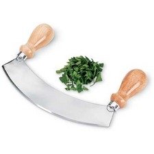 This stainless steel Mezzaluna Chopper makes quick work of herbs and vegetables. Wooden handles. Measures 6.75".