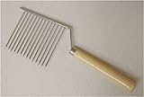 The chrome-plated Angel Food Cake Cutter with a natural wood handle cuts angel food and sponge cakes without crushing them by gently separating sections with comb tines in place of a solid blade on conventional knives and cake cutters. Dimensions: 10 x 3.5 inches.