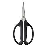 The OXO Good Grips Flexible All-Purpose Scissors are the perfect everyday tool for cutting and snipping with handles that bring ultimate comfort to hard-working hands. The contoured handles are flexible and conform to the user's grip; there are no rigid surfaces for the outer hand to rub against. Hardened stainless steel blades easily cut through herbs, paper, cardboard, meat, poultry, flower stems, twine and more making them ideal for kitchen, craft and home office use. Blades come apart for easy cleaning but a patent-pending release tab ensures they won't separate accidentally when stored or during use. Soft, comfortable, non-slip handles ensure a secure grip. Perfect for the next extended gift-wrapping or coupon clipping session.